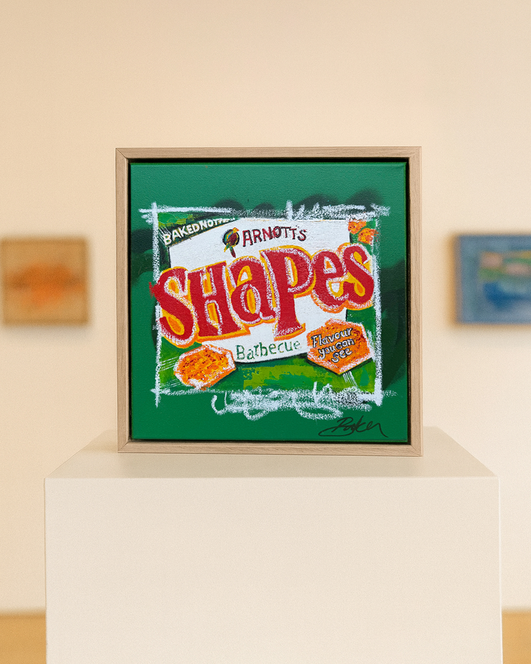 This playful painting bursts with Aussie nostalgia — the colour, the joy, the taste of sharing a box of Shapes after school or on the beach.