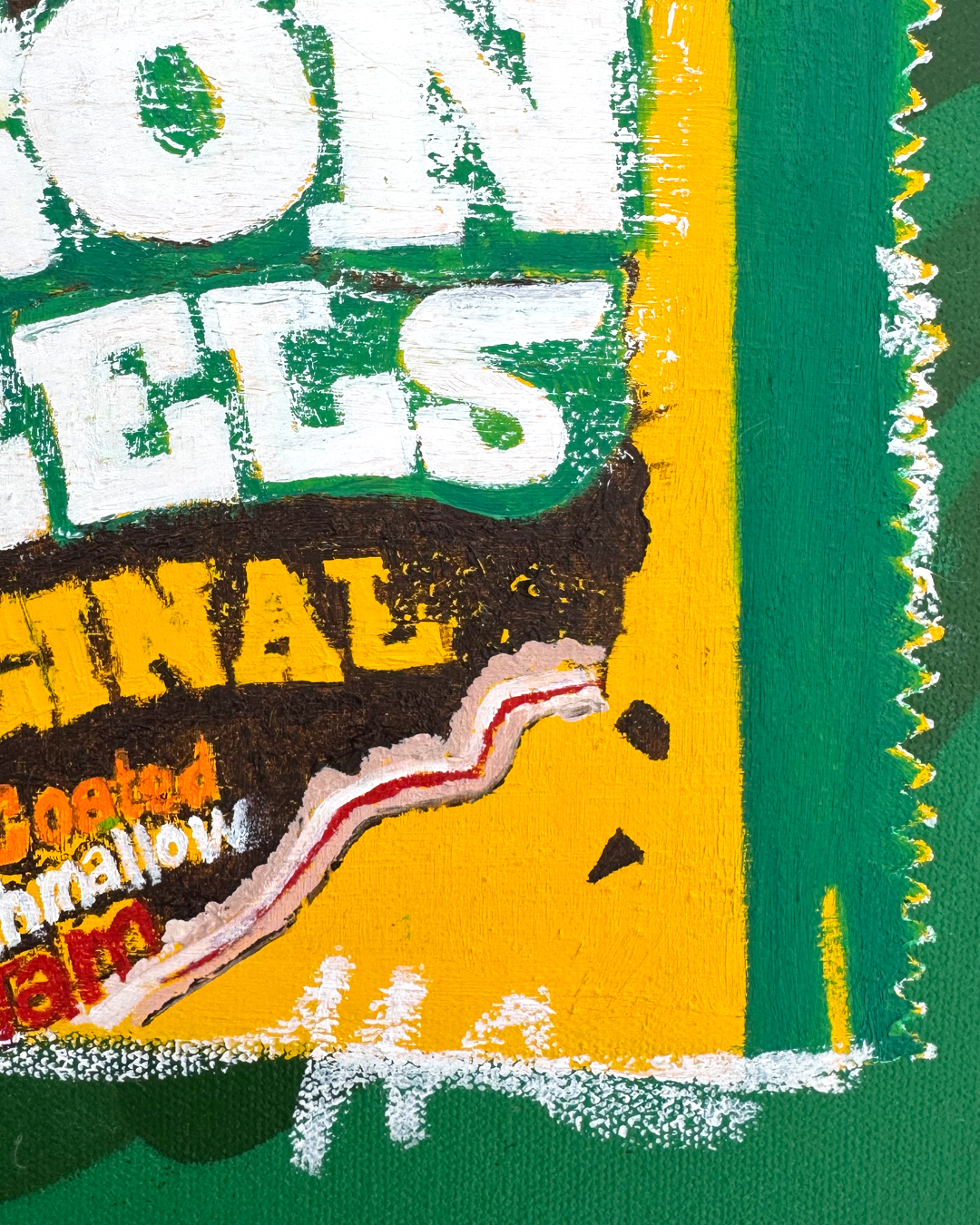 This artwork for sale is bold, nostalgic, and uniquely Australian. Wagon Wheels Choc Coated is more than just a sweet reminder of childhood—it is a timeless, one-of-a-kind painting that captures the joy of everyday indulgence with humour and heart.