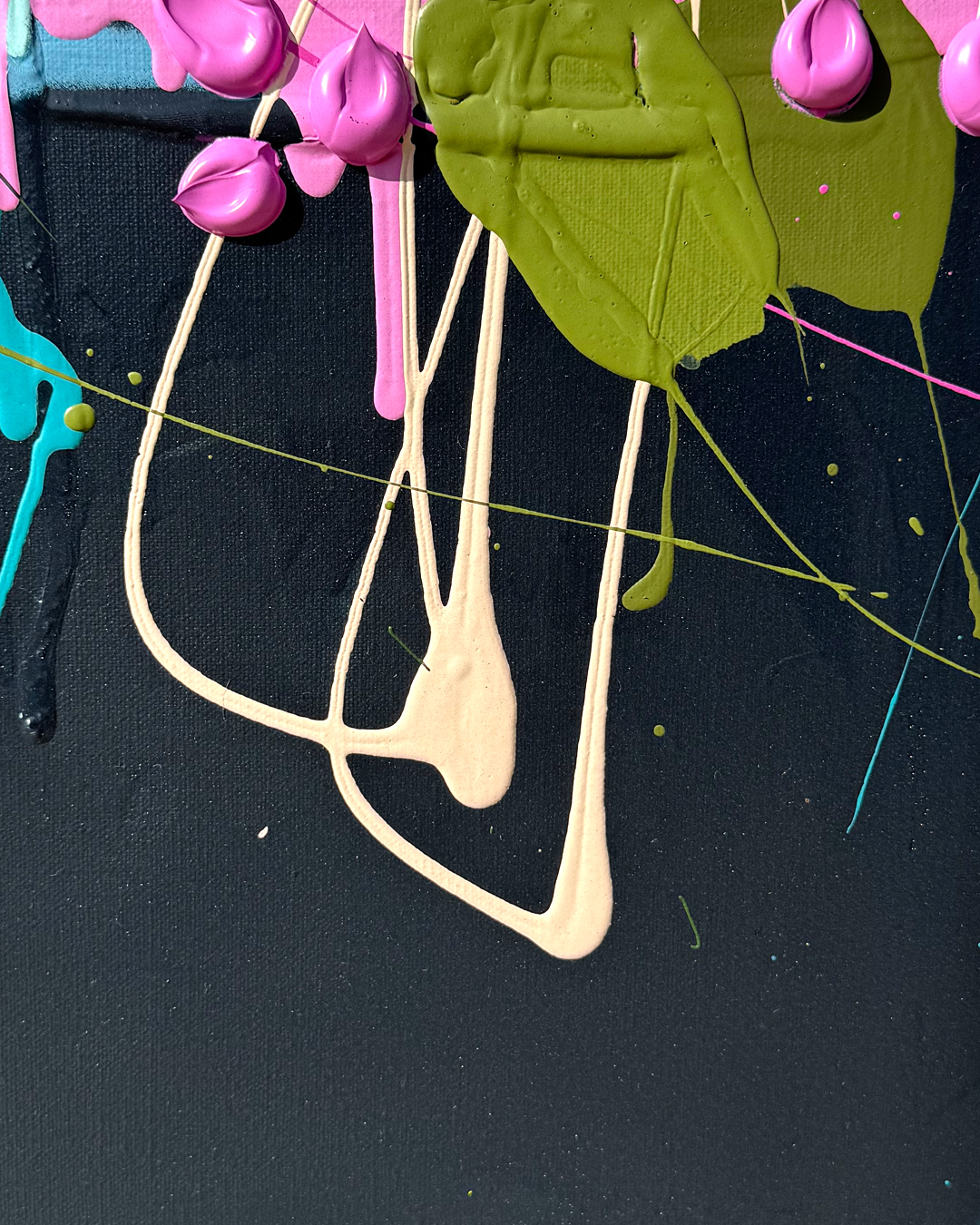 Cartel Flowers master the art of acrylic paints and spray cans; nothing is painted on a surface under 122 x 122 cm square. Within this series, Jessica still works with her love for large-scale artwork.