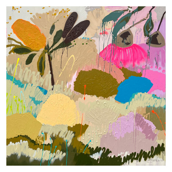 Jessica has captured the art scene with her works of large, colourful, textured abstract botanicals and hasn’t looked back. She has worked on this collection, ‘Cartel Flowers, ‘ for many years, successfully selling hundreds of artworks. She works on this range continually, with pieces exhibited in several Australian galleries today.