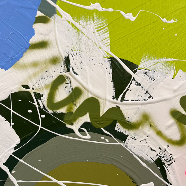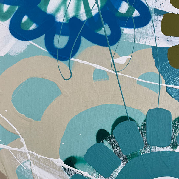 ‘Grafitti Flowers’ is one of her freshest series. This collection is big, bold and colourful. Like her other two collections, ‘Cartel Flowers’ and ‘Street Flowers’, the spray can graffiti style mark making and paintbrush work are combined. Jessica’s love for texture is less prevalent in this range. The fresh opaque titanium white layers worked into bolder colours capture this extensive collection.