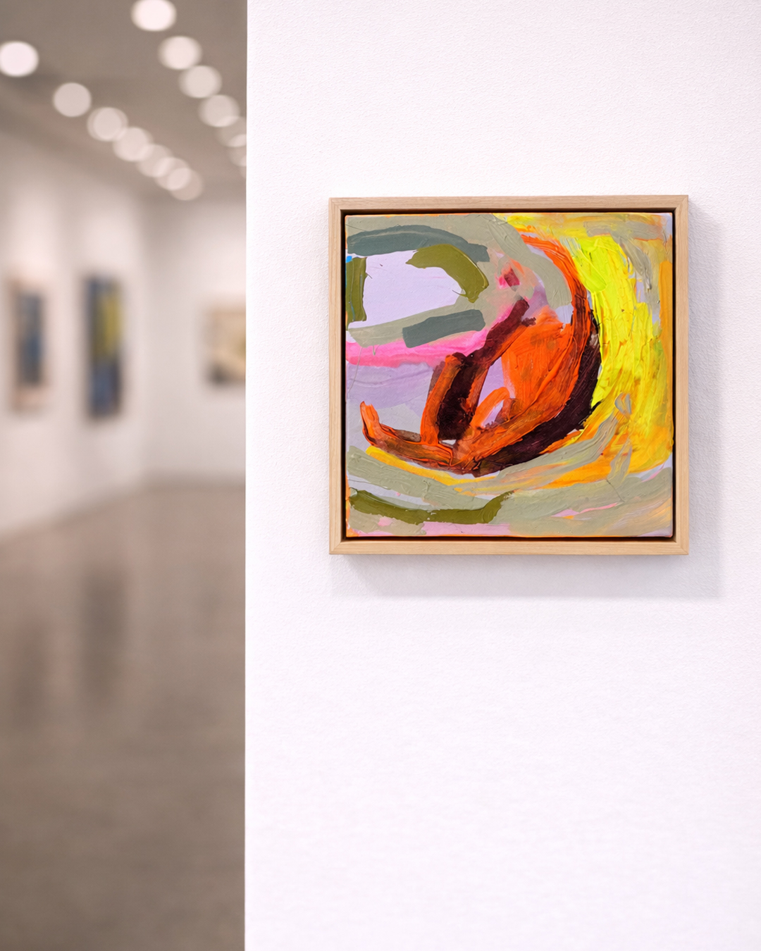 Vibrant and full of movement, this piece feels like a burst of energy — neon yellows, hot pinks and fiery oranges swirl together, creating a sense of rhythm, spontaneity and joy.